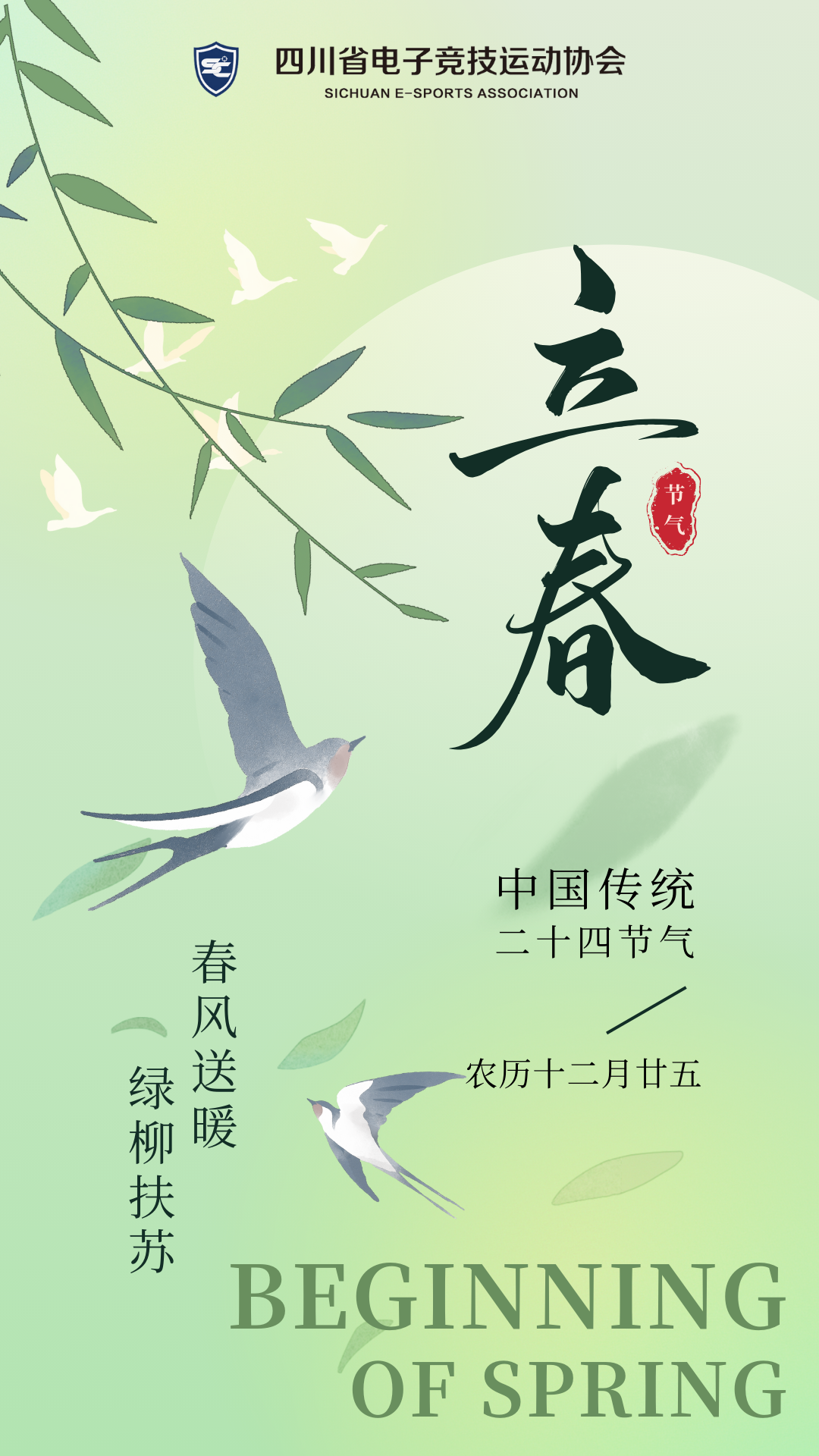 立春啦~!新的一年也要继续搞竞哦!值此立春之日,四川省电子竞技运动协会谨向所有热爱电竞的朋友们,致以最诚挚的春日祝福! 春回巴蜀,万物萌新。正如破土新芽蓄力向上,四川电竞也在岁月沉淀中蓬勃生长——从规范运动员注册体系到打造“竞享生活”消费场景,从培育本土赛事IP到输送顶尖电竞人才,我们始终以团结聚力、规范发展为初心,让电竞运动在川蜀大地上健康扎根。 愿这个春天,选手们如东风破阵,在赛场上绽放高光时刻;从业者们似春潮涌动,共筑产业发展新生态;爱好者们沐春光同行,共享电竞热血与热爱。新岁启封,协会将继续搭建交流桥梁、完善产业生态,与大家携手奔赴名古屋亚运会等更高舞台,让四川电竞的光芒照亮每一段追梦之路! 立春安康,竞启新程!愿我们不负春光、不负热爱,在新的赛季里并肩逐光、再创佳绩!